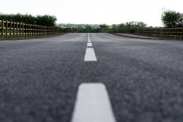 New road with white broken white line along the middle to indicate each side for motorists